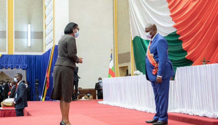 Le Premier Ministre, Chef du Gouvernement Madame Rose Christiane Ossouka Raponda, a représenté le Président de la République, chef de l’État, S.E.M. Ali Bongo Ondimba lors de la cérémonie d’investiture du Président de la République Centrafricaine, S.E.M. Faustin Archange Touadéra, qui s’est déroulée ce mardi 30 mars 2021 à Bangui.